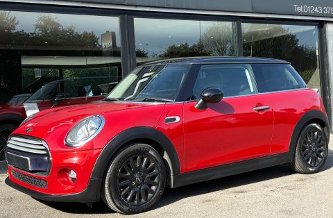 JUST ARRIVED - AWAITING PREPARATION. A frequently requested automatic Mini Hatch Cooper 1.5 3 door with the Chili and Media XL packs and further desirable options. Offered with eleven Mini dealer service workshop visits recorded and one former keeper shown on the V5 registration document. Finished in Blazing Red Metallic with Jet Black roof and mirror caps matched with Carbon Diamond Half Leather upholstery. Factory specified optional extras include: Chili pack, Media pack XL - Mini Professional Satellite Navigation - Mini Connected XL, Enhanced bluetooth mobile preparation, DAB Visual Boost tuner, 16" Victory spoke design alloy wheels in gloss black, Sun protection rear glass, Front central armrest, Glowing red interior colour line, Indicators in white. Standard features include: Three spoke sports leather multi-function steering wheel, Cruise control with brake function, Speed Limiter, Remote audio controls, Tyre pressure monitioring system, Sports seats, Half leather upholstery, Alarm, Immobiliser, Front seats with height and lumbar adjustment, Isofix, Storage pack, Mini Excitement pack, Mini Driving Modes, Rain sensor wipers, Auto headlights, Dual zone auto climate control air conditioning, Multi-function trip computer, Ambient interior light pack, Electric windows, Electric mirrors, Heated mirrors and washer jets, Remote central locking, Bluetooth for phone and audio, Fog lights, Keyless push button start, Multiple airbags, Front seat passenger airbag isolation facility, ULEZ compliant. With its desirable automatic transmission, this Hatch Cooper is worth checking out! We operate by appointment only Monday - Saturday, please telephone or email us to arrange a time; do not arrive unannounced as we might be closed and will not be able to assist you.